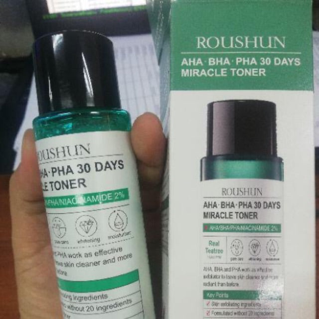 The AHA-BHA-PHA 30 Days Miracle Toner is a gentle yet powerful skincare solution designed to exfoliate, balance, and rejuvenate your skin. With a skin-friendly pH of 5.5, it helps remove dead skin cells, unclog pores, and control oil while maintaining essential moisture. This KFDA-certified toner is free from 20 harmful substances, making it safe for even the most sensitive skin.