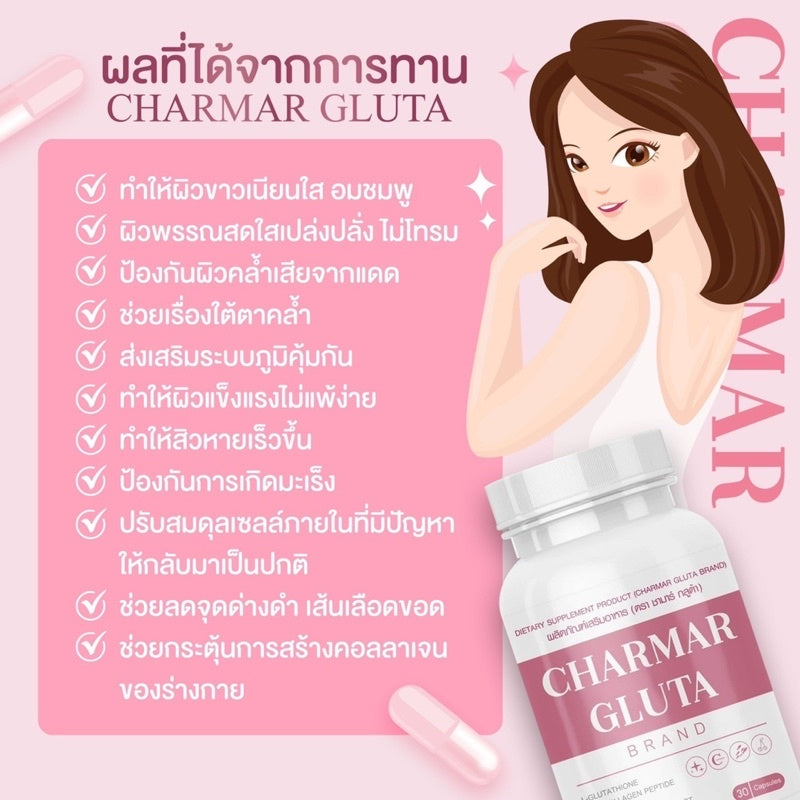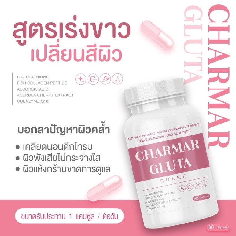 Charmar Gluta is a dietary supplement formulated to support brighter-looking skin, even skin tone, and overall skin vitality from within. Designed for individuals with dull, uneven, or hard-to-brighten skin, this formula combines glutathione, antioxidants, and botanical extracts to help reduce the appearance of dark spots, acne scars, and signs of fatigue. Charmar Gluta also supports skin hydration, stress balance, and daily wellness, making it suitable for consistent lifestyle use.