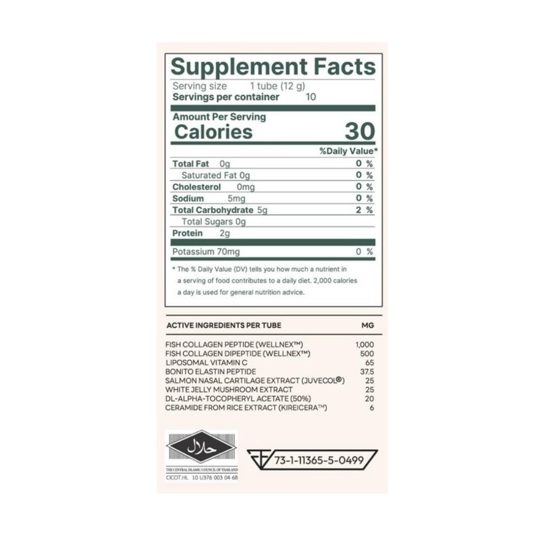 Wellnex™ Collagen Peptide & Dipeptide – Helps maintain skin elasticity and supports a firmer appearance.