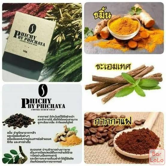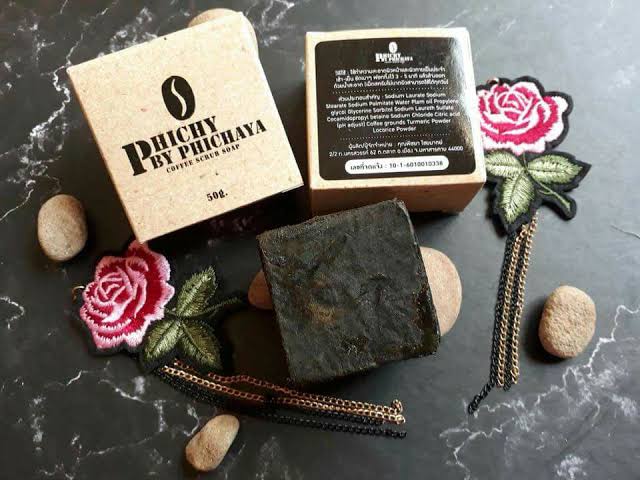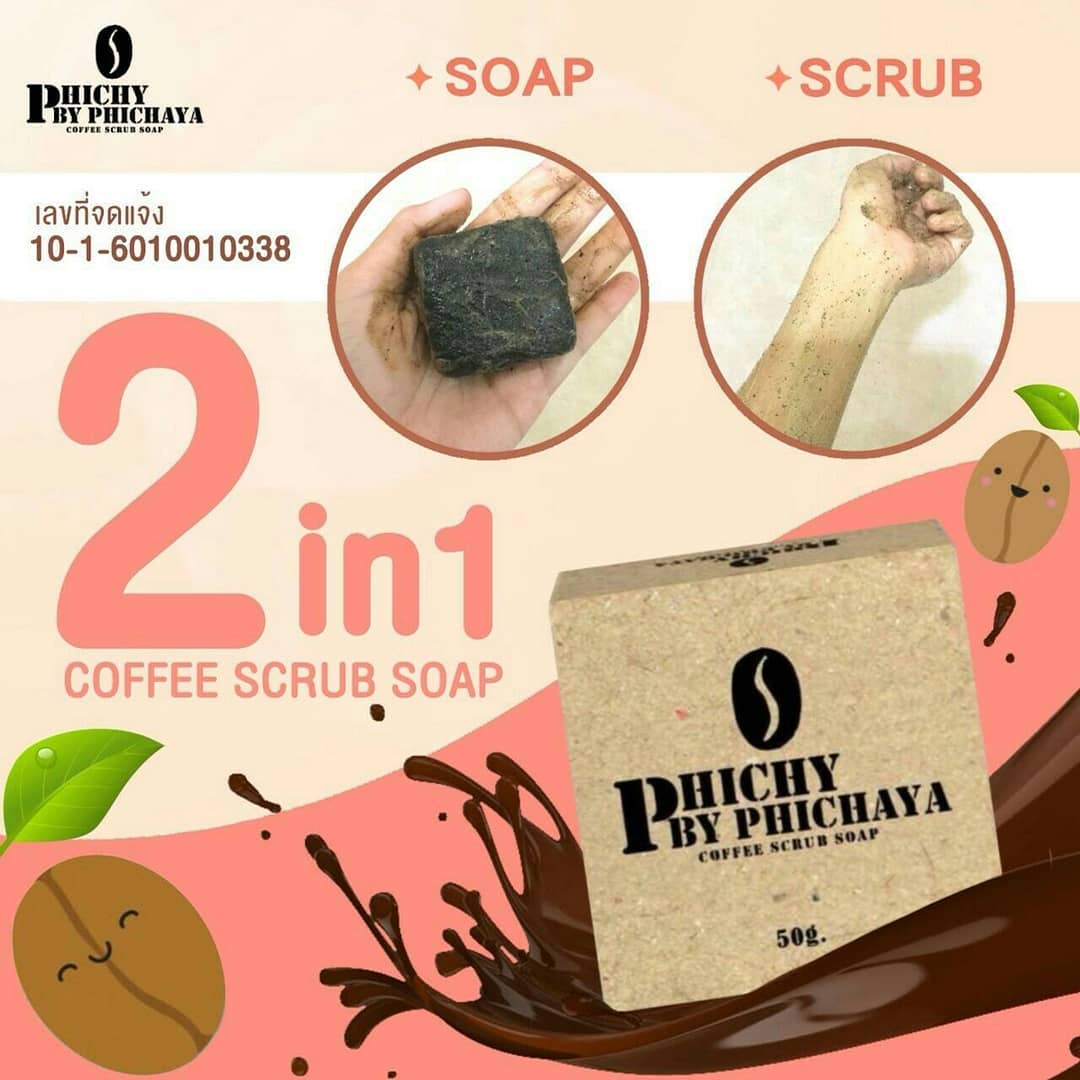 Phichy Coffee Scrub Soap (50g): Use daily to cleanse face and body, morning and evening.