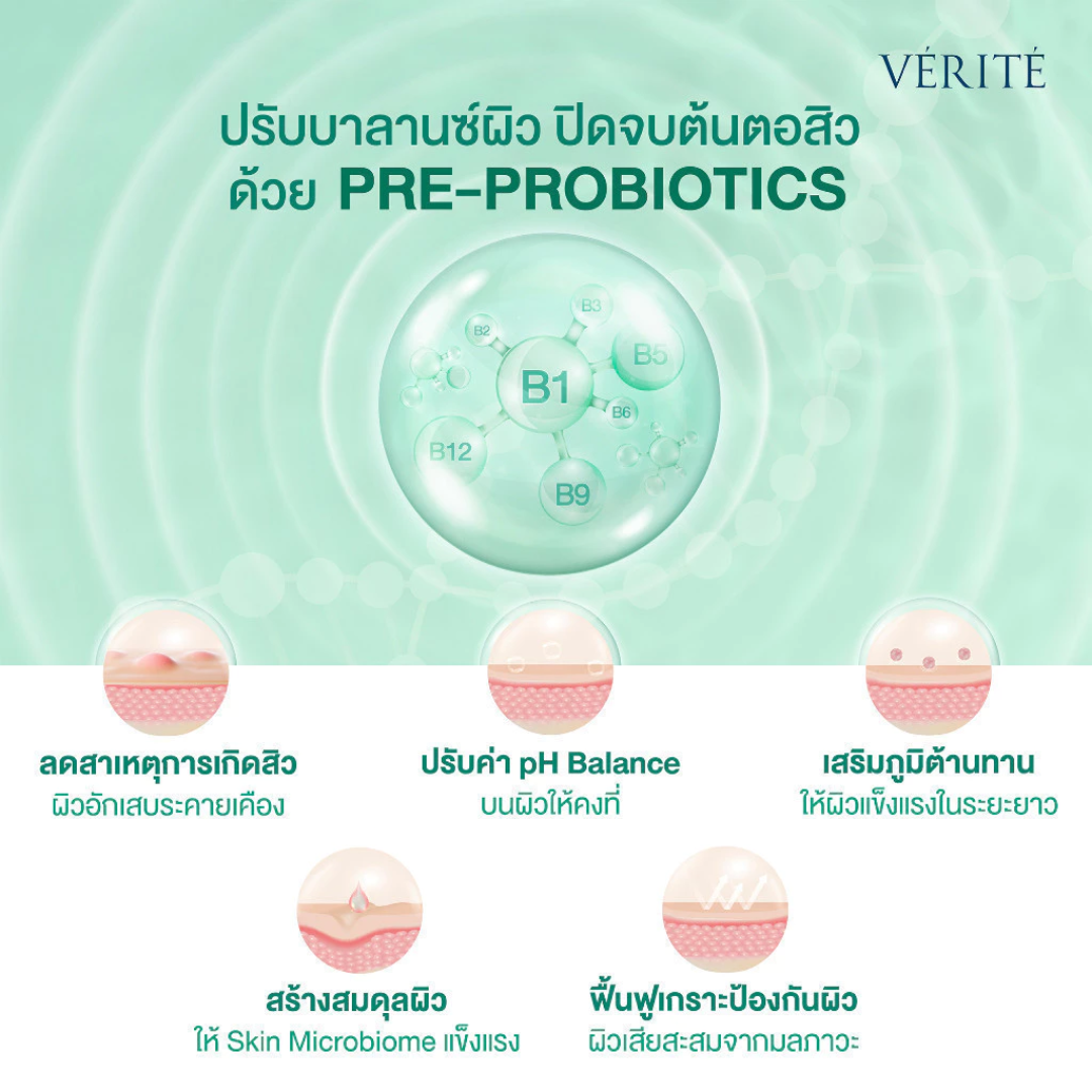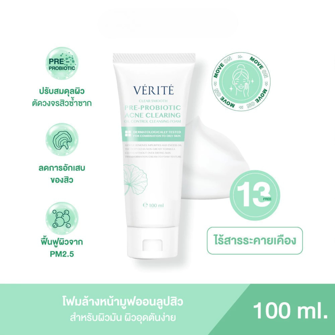 The Verite Pre-Probiotic Acne Clearing Oil Control Cleansing Foam is a concentrated cream-to-foam facial cleanser developed for combination to oily skin. Its unique pre-probiotic complex helps maintain skin balance while effectively washing away impurities, excess oil, and residue that can lead to blemishes. With a soft foam texture, it leaves skin feeling clean, refreshed, and smooth without stripping.