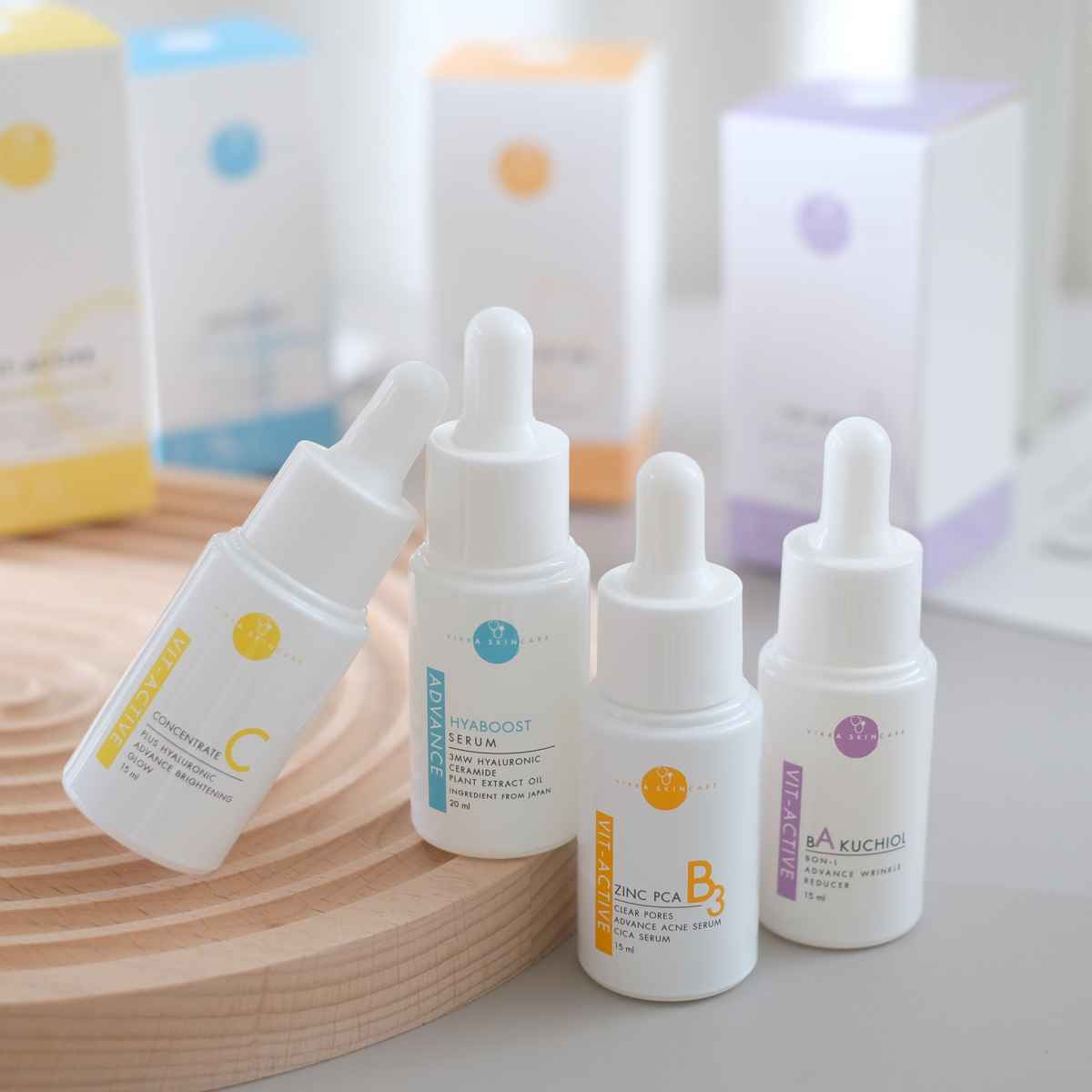 VIKKA Skincare Complete Set 4 Actives is a premium 4-step skincare system formulated to brighten, repair, hydrate, and protect all skin types. Each serum in this collection targets a specific skin concern — dullness, acne, wrinkles, and dryness — delivering visible improvements with regular use. The set includes the powerful synergy of Vitamin C, Vitamin B3, Bakuchiol, and 1.11% Hyaluronic Amino Boost, working together to create a smoother, healthier, and more radiant complexion.