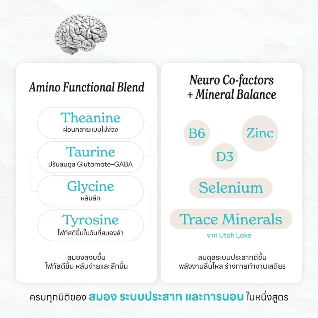- Enriched with brain-friendly amino blend (L-Theanine, Glycine, Taurine, Tyrosine)