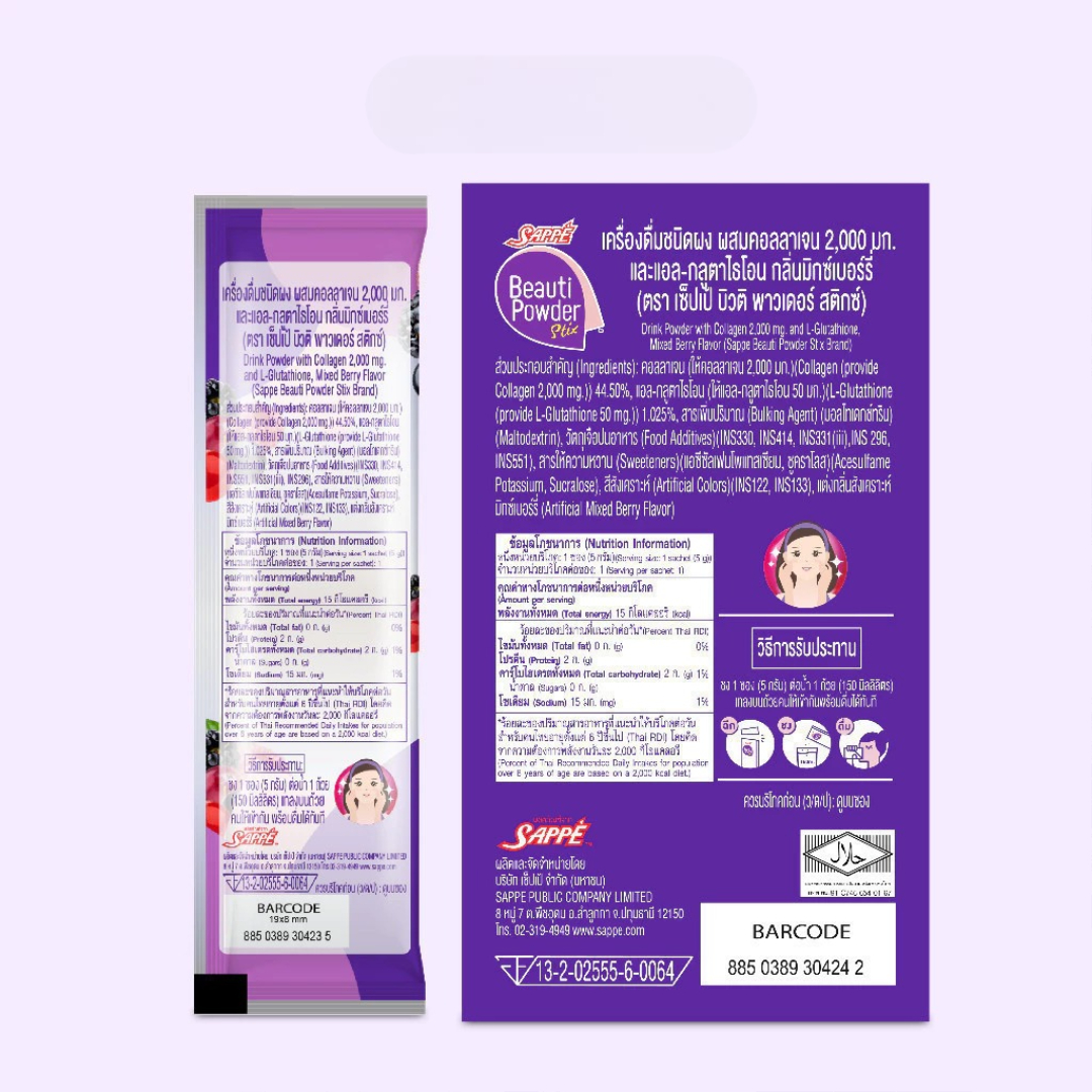 Sappe Beauti Powder Colla-Gluta Stix (Mixed Berry Flavor) is a delicious, refreshing collagen drink powder designed for easy daily use—just tear, mix, and enjoy. With 2,000 mg of collagen and added L-Glutathione, this fruity blend supports your skin’s natural radiance and helps keep it looking smooth and vibrant. Perfect for anyone who wants a tasty, convenient way to elevate their beauty routine.