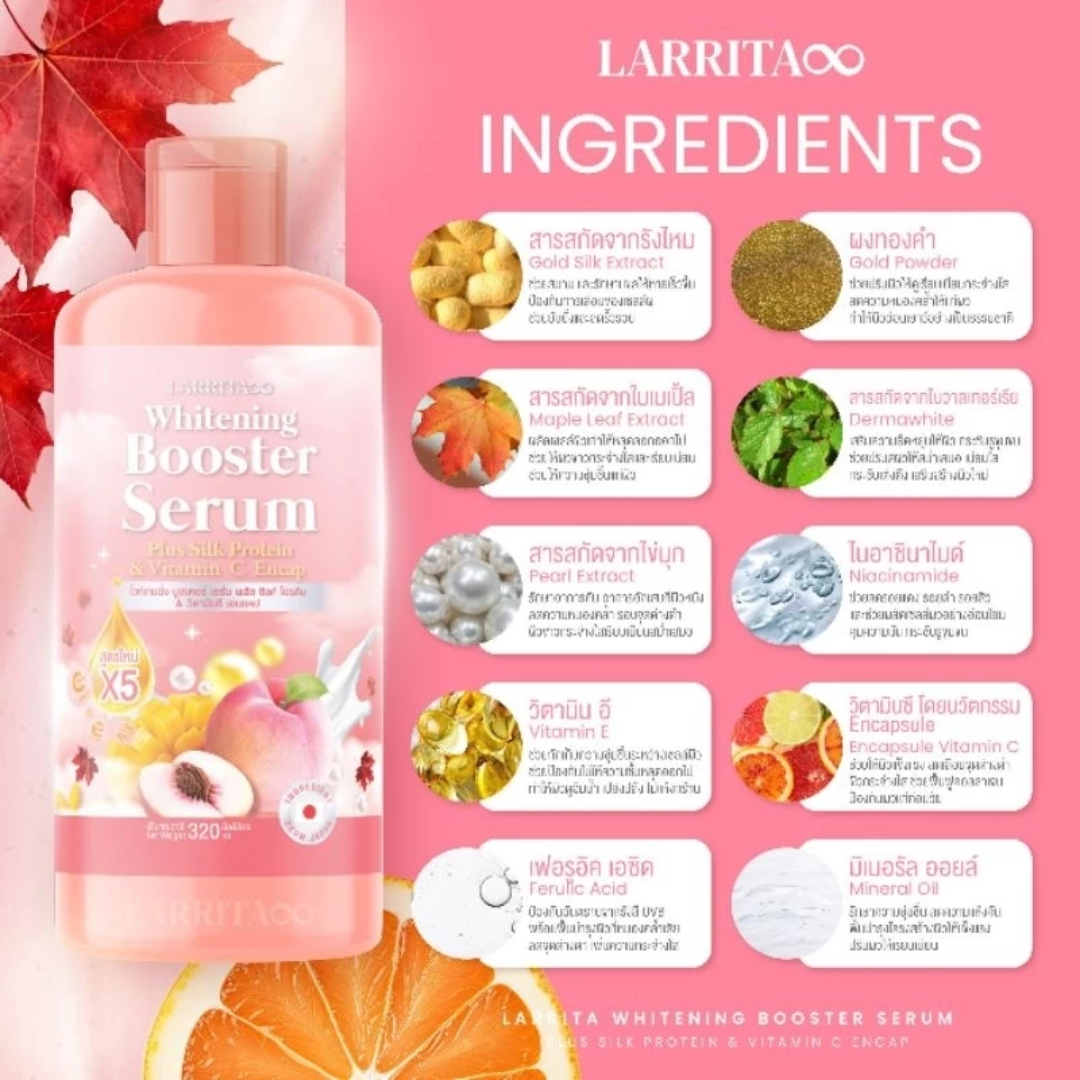 Content: Larrita Whitening Booster Serum 320 Ml. + Larrita Whitening Booster Ultimate Plus 320 Ml.