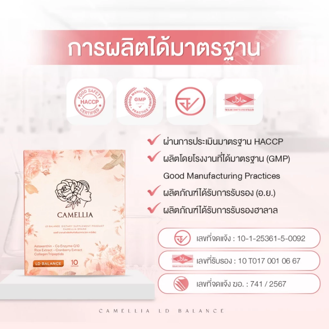 Camellia LD Balance is a premium women’s dietary supplement formulated with carefully selected Japanese extracts. Each capsule blends nature and science to support women’s daily beauty and body balance. Enriched with Astaxanthin, Coenzyme Q10, Collagen Tripeptide, and Cranberry Extract — this supplement helps promote a naturally radiant look, enhance overall confidence, and maintain daily harmony from within.