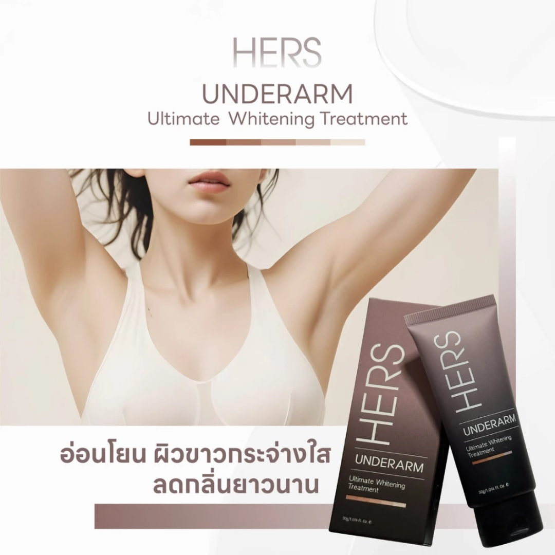 HERS Underarm Ultimate Treatmentis a gentle yet powerful underarm care cream formulated to help smooth and refine the look of uneven skin texture. Designed to care for delicate areas such as underarms, elbows, knees, and neck, it helps maintain natural radiance and a fresh feel throughout the day. With its blend of natural botanical extracts including Gigawhite, Niacinamide, Licorice Extract, and Witch Hazel, it nourishes and softens skin while supporting a visibly smoother and more even-toned appearance. The lightweight, non-greasy formula absorbs quickly and leaves skin feeling comfortable and refreshed — without alcohol, parabens, or silicones.